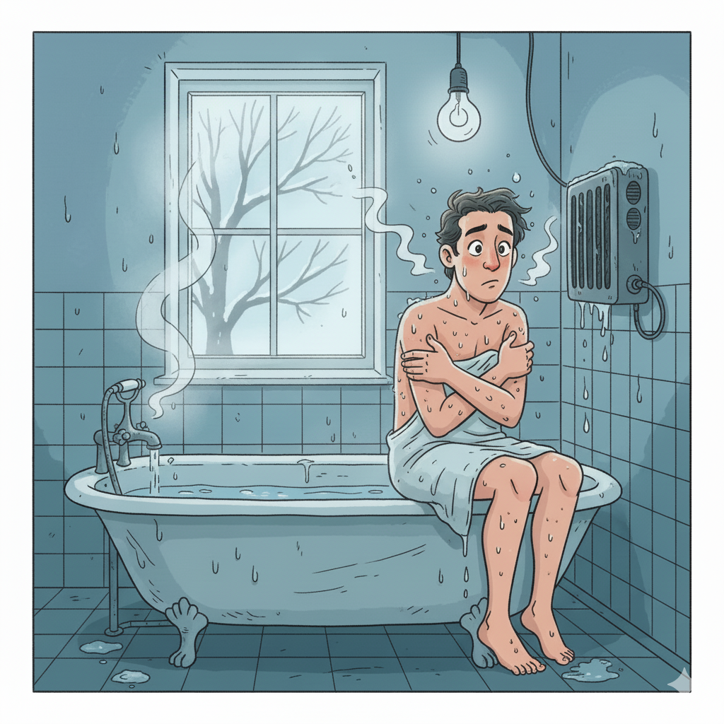 寒すぎて乾かないし、蓄冷しまくったお風呂はもはや冷蔵庫。